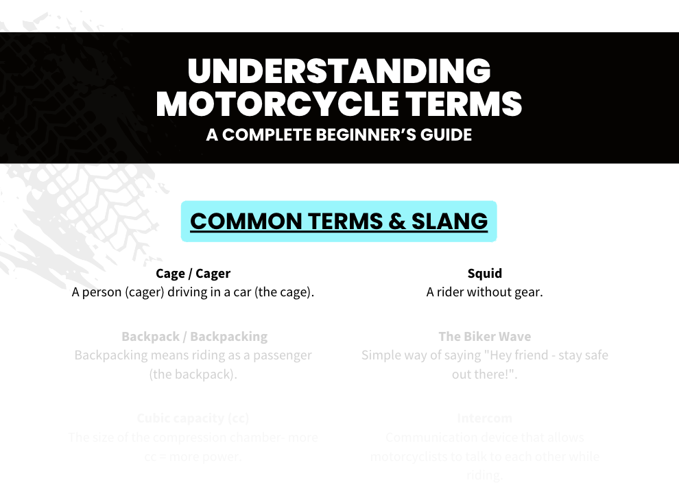 Whether you’re starting as a new rider or want to get more familiar with the biker slang, this Motorcycle Cheat Sheet is here to help!